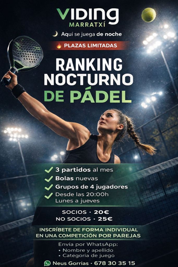 El ranking se disputa en Viding Illes Marratxí, un centro deportivo con excelentes instalaciones para disfrutar del pádel en un entorno cómodo y profesional.